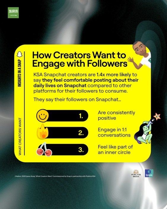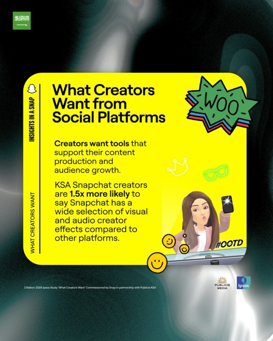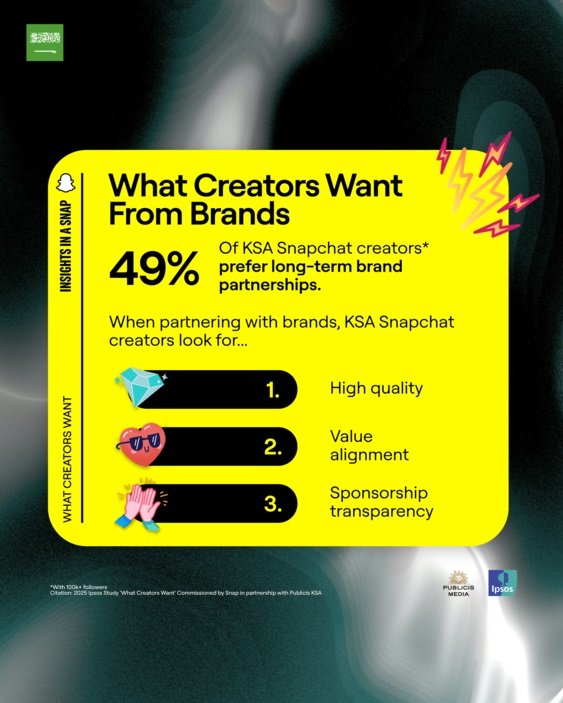 كشفت دراسة مشتركة أجرتها سناب شات بالتعاون مع بوبليسيس ميديا الشرق الأوسط وشمال أفريقيا وشركة إبسوس، عن رؤى معمّقة حول تطلعات صنّاع المحتوى في المملكة العربية السعودية، وطريقة تعاملهم مع المنصات الاجتماعية، وما ينتظرونه من العلامات التجارية وجمهورهم. وأبرزت النتائج الدور المتنامي كمنصة رئيسية للمحتوى الأصيل والروابط الحقيقية.
