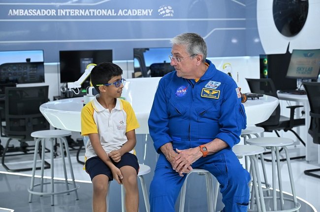 في حدث تعليمي استثنائي يمزج بين الشغف العلمي والتطبيق العملي، استقبلت أكاديمية أمباسادور الدولية (AIA) اليوم، الدكتور دون توماس، رائد الفضاء المخضرم في وكالة “ناسا”، الذي شارك في أربع مهمات فضائية تاريخية. جاءت الزيارة لتدشين مختبر “سكاي لاب” (Sky Lab) الجديد، وهو صرح تعليمي مبتكر مخصص لمجالات العلوم والتكنولوجيا والهندسة والرياضيات (STEM)، صُمم خصيصاً لإعداد وإلهام الجيل القادم من العلماء والمهندسين والطيارين.