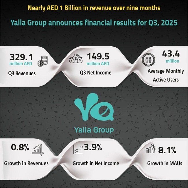 Yalla Group Limited (“Yalla” or the “Company”) (NYSE: YALA), recognized as the largest Middle East and North Africa (MENA)-based online social networking and gaming company, today announced its strong financial results for the third quarter ending on September 30, 2025. The company’s revenues rose to AED 329.1 million, marking a 0.8% increase compared to the third quarter of 2024, reflecting steady and consistent business growth.